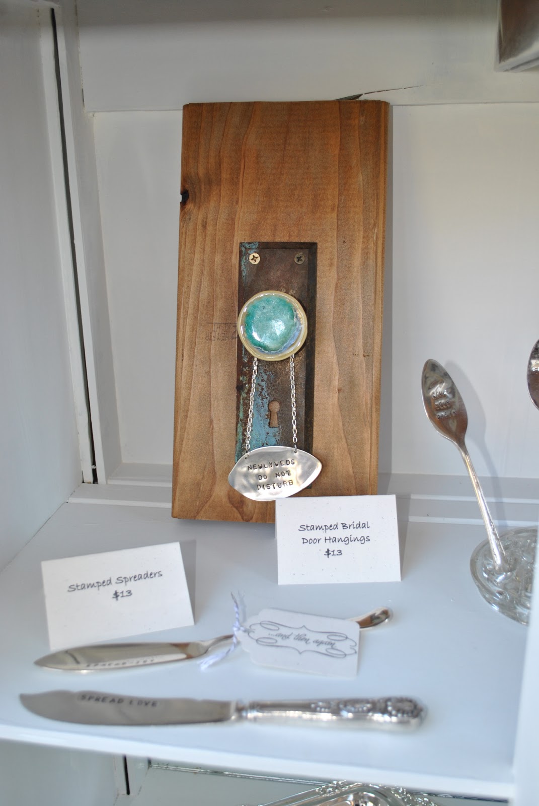 As I experiment with others uses for our silverware creations, I kept finding myself drawn towards ways to incorporate the silver into wedding décor.