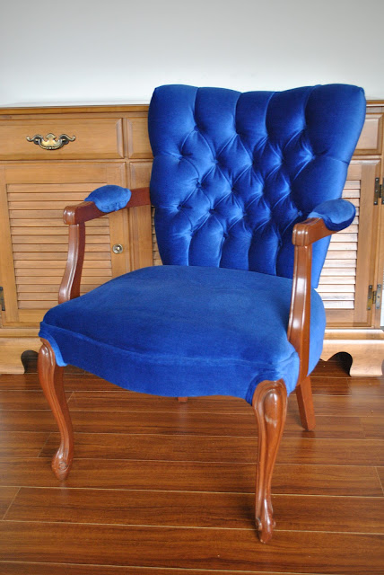 This fabric is in like new condition, a stunning Egyptian blue. But do we paint the wood or leave as is???