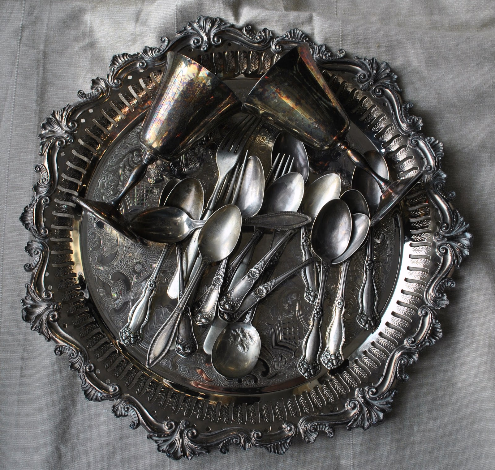 My final acquisition of the day was this awesome array of silverplate items to add to my collection. I love the detail on the tray. Still not sure what I want to do with it...