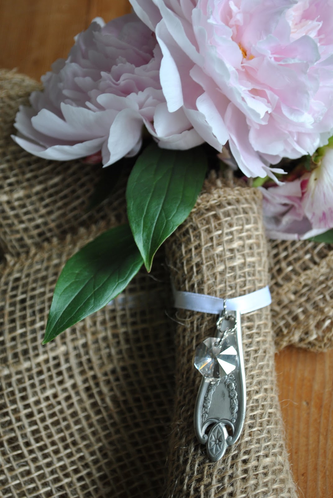 Part of the inspiration behind the silverware component of "...and then again" came from my own wedding 6 years ago. We collected various sizes of silver spoons and then bent them to use as napkin rings at each place setting. The guests really loved the personal touch and loved that they were able to take theirs home.